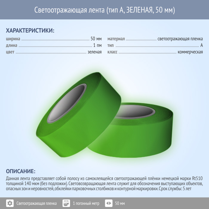 Светоотражающая однородная лента (тип А, ЗЕЛЕНАЯ, 50 мм х 1 п.м.) в Сургуте купить