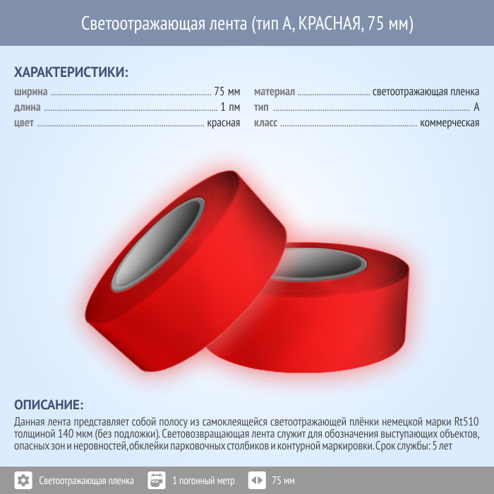 Светоотражающая однородная лента (тип А, КРАСНАЯ, 75 мм х 1 п.м.) в Сургуте купить
