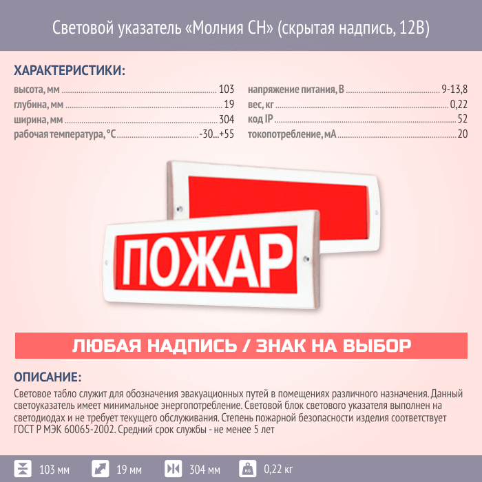 Световой указатель Молния СН (скрытая надпись, 12В) в Сургуте купить