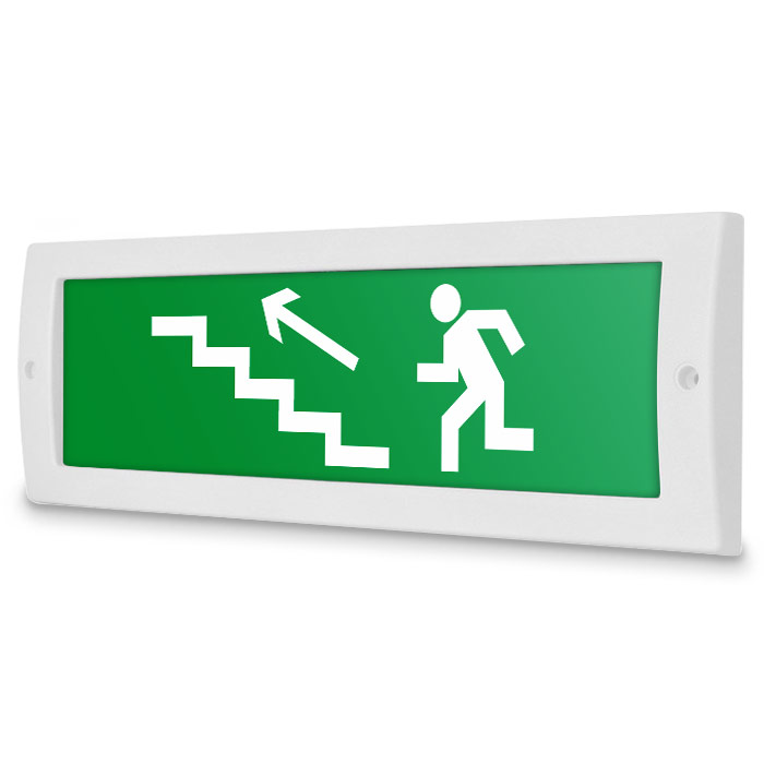 Световое табло «Направление к эвакуационному выходу по лестнице вверх (левосторонний)», Молния (12В) в Сургуте купить