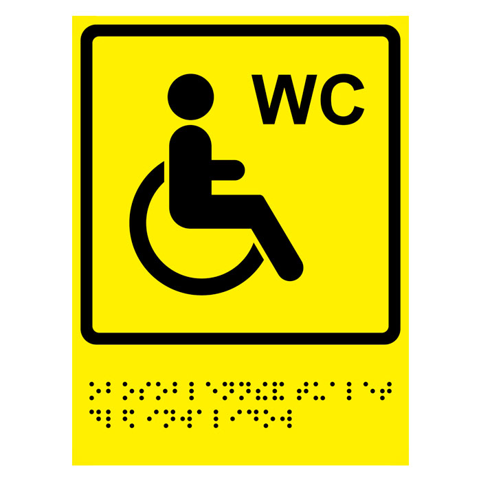 Тактильная пиктограмма «Туалет для инвалидов» с азбукой Брайля, ДС64 (полистирол 3 мм, 150х225 мм) в Сургуте купить