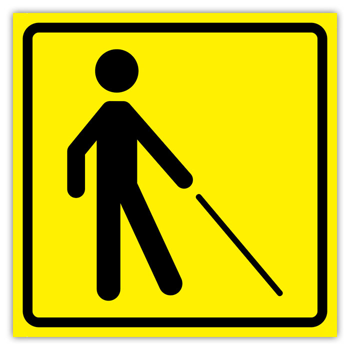 Тактильный предупреждающий знак «Уступите дорогу человеку с белой тростью», ДС77 (полистирол 3 мм, 200х200 мм) в Сургуте купить