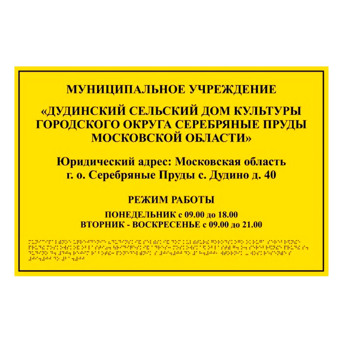 Тактильная вывеска с дублированием азбукой Брайля, ДС11 (полистирол 3 мм, 600х400 мм) в Сургуте купить