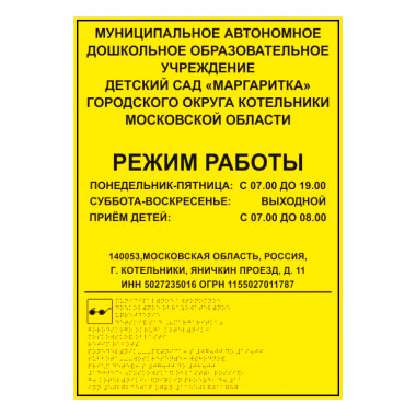 Тактильная вывеска с дублированием азбукой Брайля, ДС8 (полистирол 3 мм, 300х400 мм) в Сургуте купить