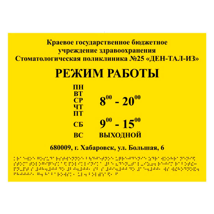 Тактильная вывеска с дублированием азбукой Брайля, ДС10 (полистирол 3 мм, 600х500 мм) в Сургуте купить
