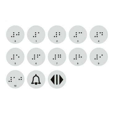 Тактильные наклейки для кнопок лифта с 0 по 10 этаж (набор), ДС95 (пленка, 20х20 мм, серебристый) в Сургуте купить