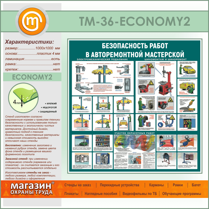 Стенд «Безопасность работ в авторемонтной мастерской» (TM-36-ECONOMY2) в Сургуте купить