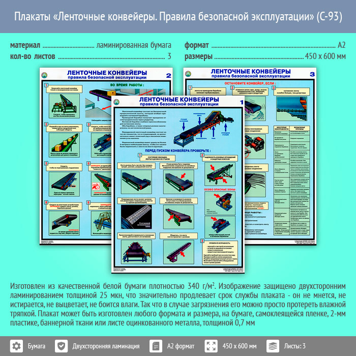 Плакаты «Ленточные конвейеры. Правила безопасной эксплуатации» (С-93, ламинированная бумага, А2, 3 листа) в Сургуте купить