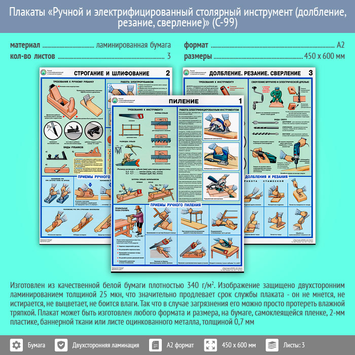 Плакаты «Ручной и электрифицированный столярный инструмент» (С-99, ламинированная бумага, А2, 3 листа) в Сургуте купить