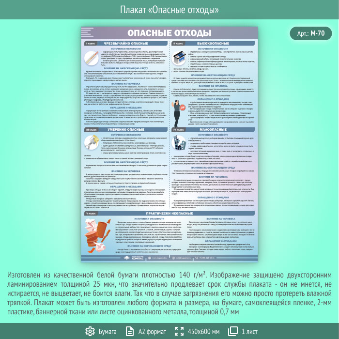 Плакат «Опасные отходы» (М-70, ламинированная бумага, А2, 1 лист) в Сургуте купить