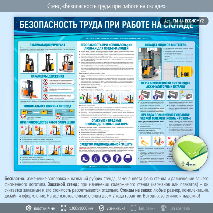 Стенд «Безопасность труда при работе на складе» (TM-44-ECONOMY2) в Сургуте купить