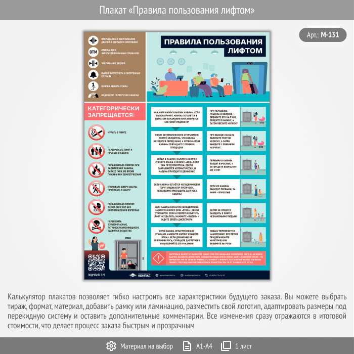 Плакат «Правила пользования лифтом» с QR (М-131, 1 лист) в Сургуте купить