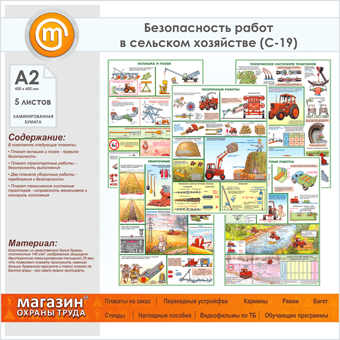 Плакаты «Безопасность работ в сельском хозяйстве» (С-19, ламинированная бумага, А2, 5 листов) в Сургуте купить