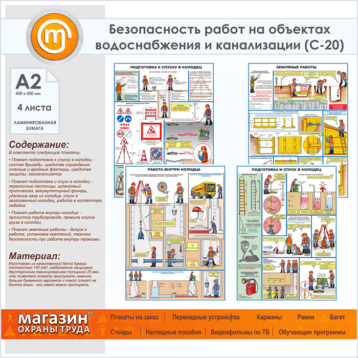 Плакаты «Безопасность работ на объектах водоснабжения и канализации» (С-20, ламинированная бумага, А2, 4 листа) в Сургуте купить