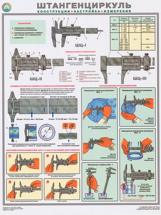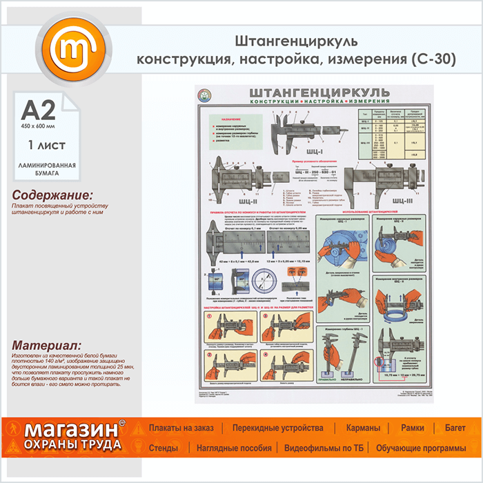 Плакат «Штангенциркуль - конструкция, настройка, измерения» (С-30, ламинированная бумага, А2, 1 лист) в Сургуте купить