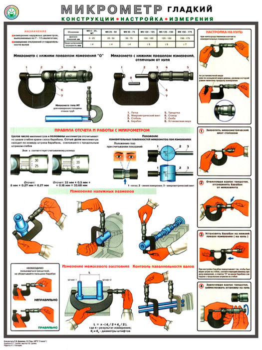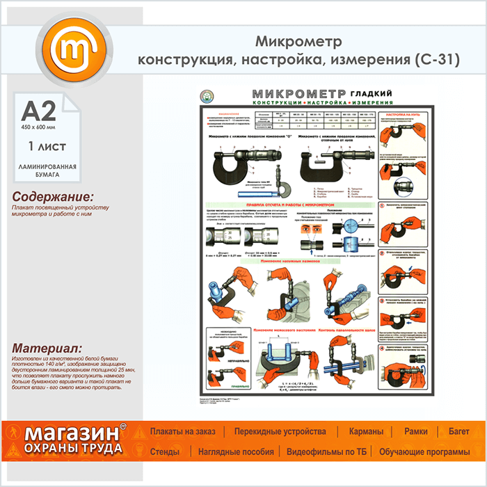 Плакат «Микрометр - конструкция, настройка, измерения» (С-31, ламинированная бумага, А2, 1 лист) в Сургуте купить