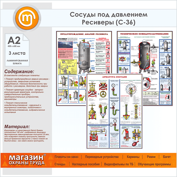 Плакаты «Сосуды под давлением. Ресиверы» (С-36, ламинированная бумага, А2, 3 листа) в Сургуте купить