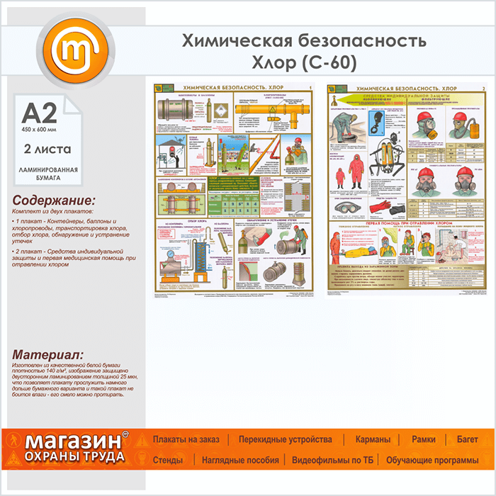 Плакаты «Химическая безопасность. Хлор» (С-60, ламинированная бумага, А2, 2 листа) в Сургуте купить