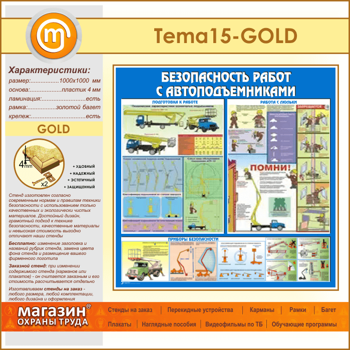 Стенд «Безопасность работ с автоподъемниками» (TM-15-GOLD) в Сургуте купить