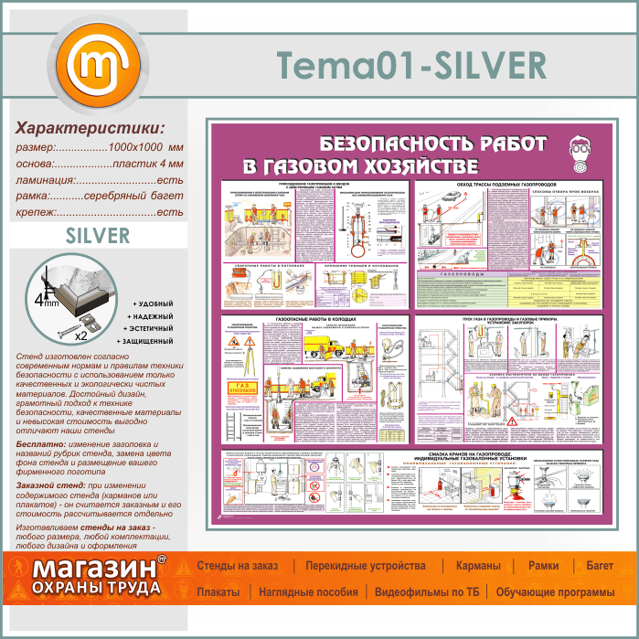 Стенд «Безопасность работ в газовом хозяйстве» (TM-01-SILVER) в Сургуте купить