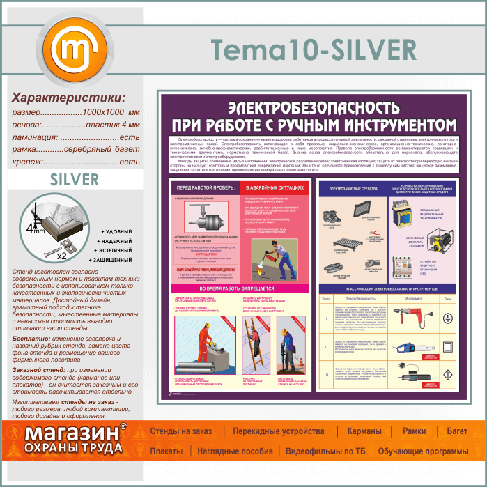 Стенд «Электробезопасность при работе с ручным инструментом» (TM-10-SILVER) в Сургуте купить