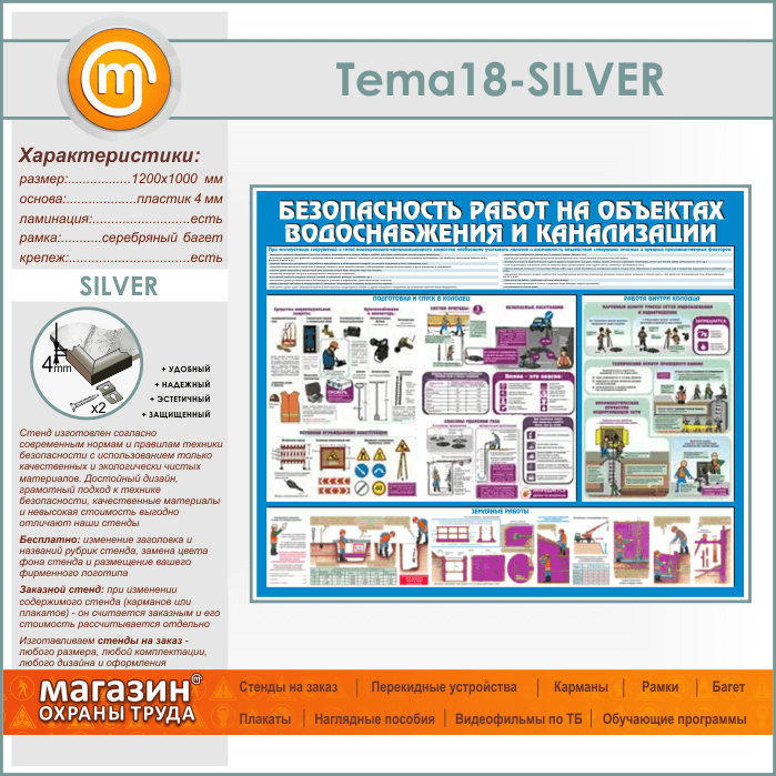 Стенд «Безопасность работ на объектах водоснабжения и канализации» (TM-18-SILVER) в Сургуте купить