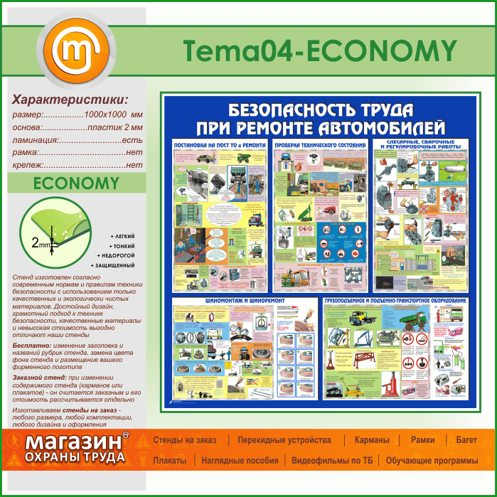 Стенд «Безопасность труда при ремонте автомобилей» (TM-04-ECONOMY) в Сургуте купить