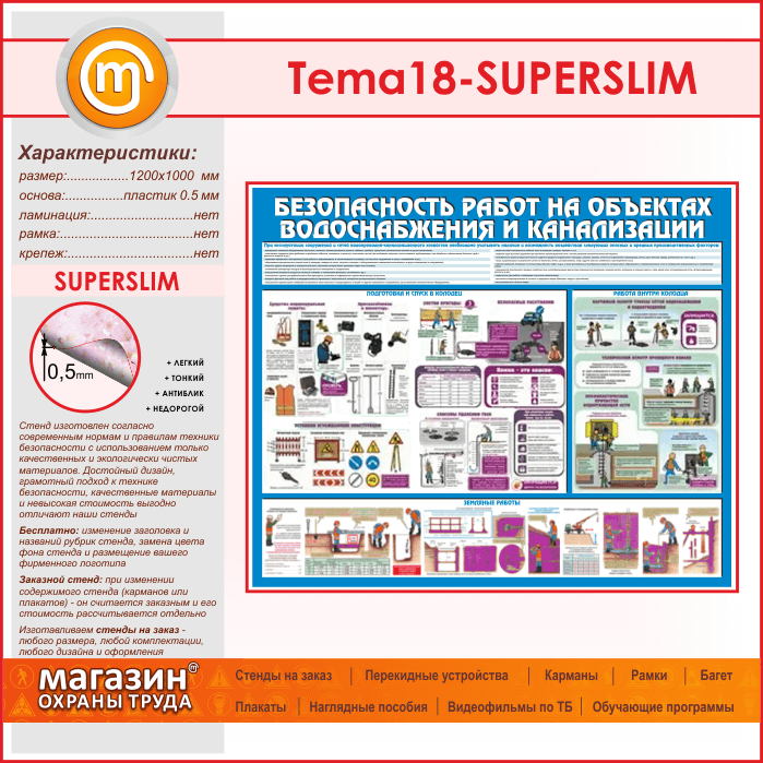 Стенд «Безопасность работ на объектах водоснабжения и канализации» (TM-18-SUPERSLIM) в Сургуте купить