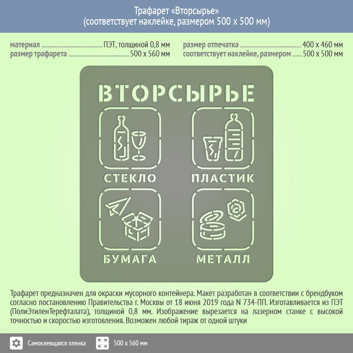 Трафарет «Вторсырье» (соответствует наклейке, размером 500х500 мм) в Сургуте купить