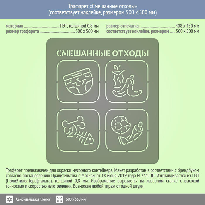 Трафарет «Смешанные отходы» (соответствует наклейке, размером 500х500 мм) в Сургуте купить