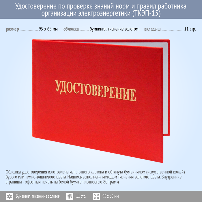 Бланк удостоверения по проверке знаний норм и правил работника организации электроэнергетики (ТКЭП-15) в Сургуте купить