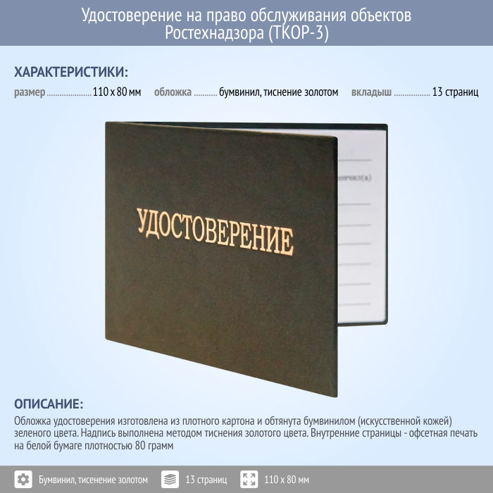 Бланк удостоверения на право обслуживания объектов Ростехнадзора (ТКОР-3) в Сургуте купить