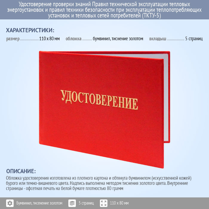 Бланк удостоверения проверки знаний Правил технической эксплуатации тепловых энергоустановок и правил техники безопасности при эксплуатации теплопотребляющих установок и тепловых сетей потребителей (ТКТУ-5) в Сургуте купить