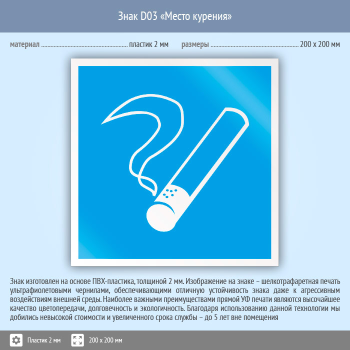 Знак D03 «Место курения» (пластик, 200х200 мм) в Сургуте купить