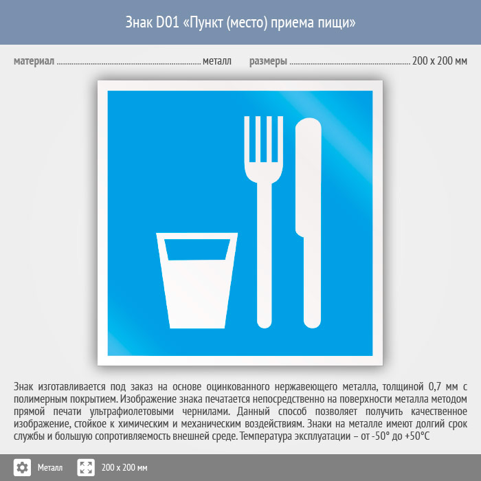 Знак D01 «Пункт (место) приема пищи» (металл, 200х200 мм) в Сургуте купить