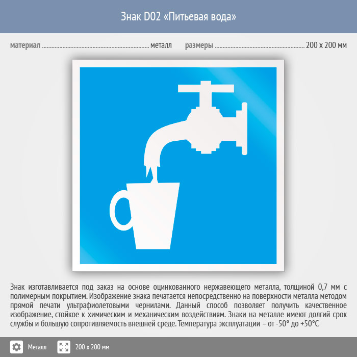 Знак D02 «Питьевая вода» (металл, 200х200 мм) в Сургуте купить