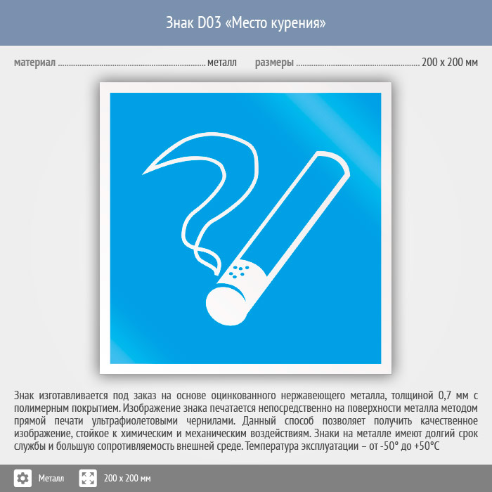 Знак D03 «Место курения» (металл, 200х200 мм) в Сургуте купить