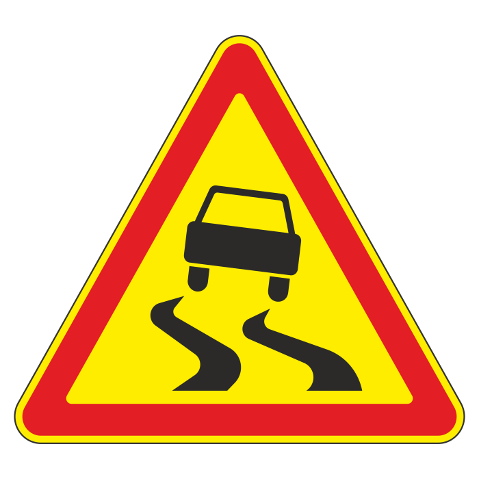 Дорожный знак 1.15 «Скользкая дорога» (временный) (металл 0,8 мм, II типоразмер: сторона 900 мм, С/О пленка: тип В алмазная) в Сургуте купить