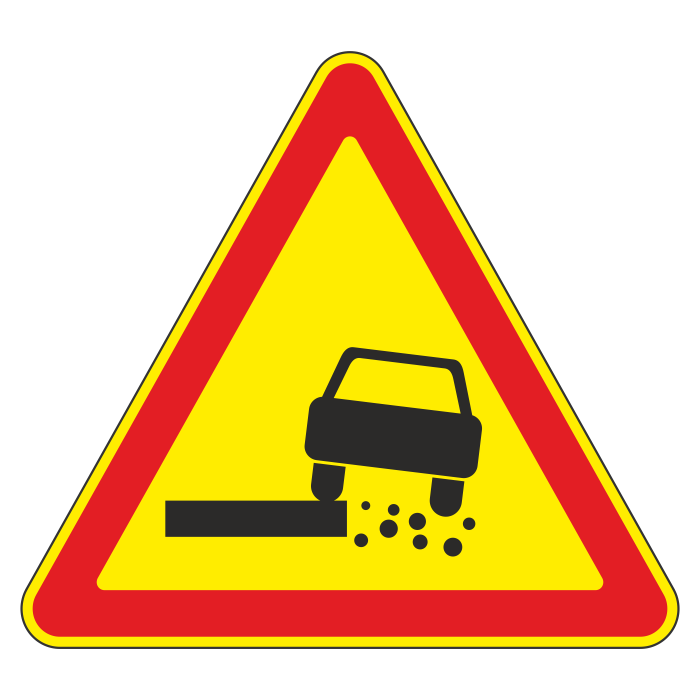 Дорожный знак 1.19 «Опасная обочина» (временный) (металл 0,8 мм, IV типоразмер: сторона 1500 мм, С/О пленка: тип В алмазная) в Сургуте купить