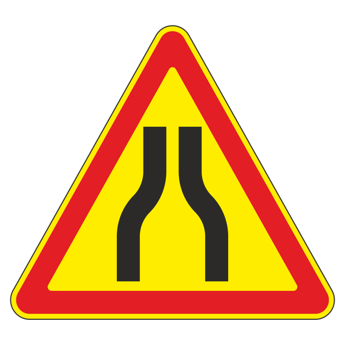 Дорожный знак 1.20.1 «Сужение дороги» (временный) (металл 0,8 мм, I типоразмер: сторона 700 мм, С/О пленка: тип Б высокоинтенсивная) в Сургуте купить