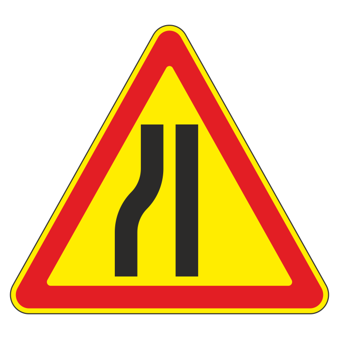 Дорожный знак 1.20.3 «Сужение дороги» (временный) (металл 0,8 мм, II типоразмер: сторона 900 мм, С/О пленка: тип В алмазная) в Сургуте купить