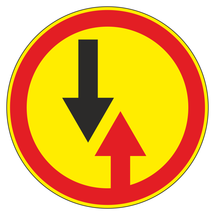 Дорожный знак 2.6 «Преимущество встречного движения» (временный) (металл 0,8 мм, III типоразмер: диаметр 900 мм, С/О пленка: тип В алмазная) в Сургуте купить
