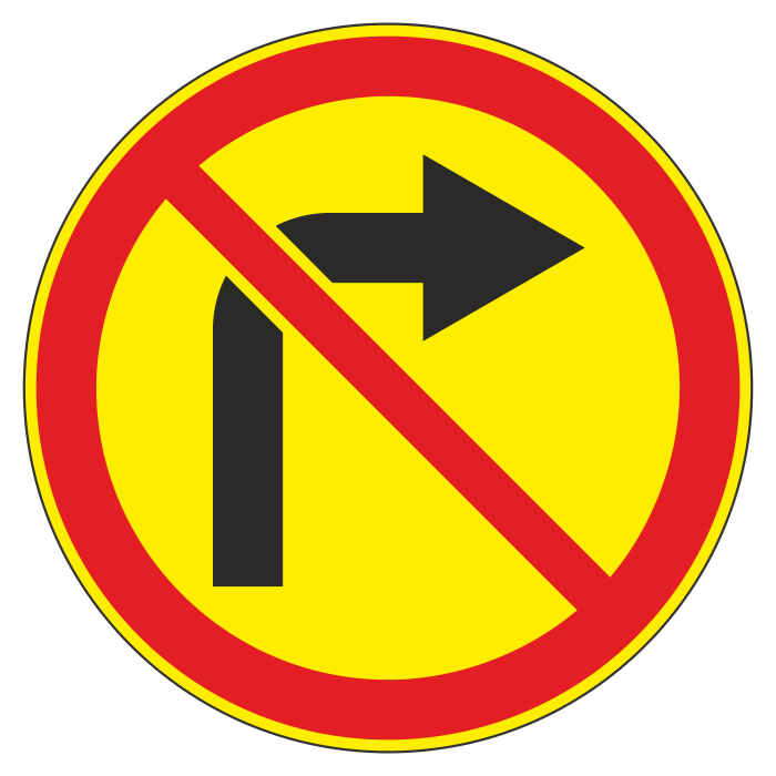 Дорожный знак 3.18.1 «Поворот направо запрещен» (временный) (металл 0,8 мм, I типоразмер: диаметр 600 мм, С/О пленка: тип А инженерная) в Сургуте купить