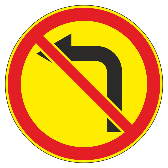 Дорожный знак 3.18.2 «Поворот налево запрещен» (временный) (металл 0,8 мм, III типоразмер: диаметр 900 мм, С/О пленка: тип Б высокоинтенсивная) в Сургуте купить