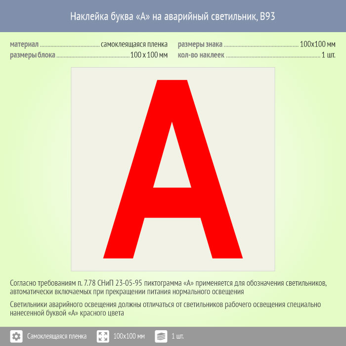 Наклейка буква «А» на аварийный светильник, B93 (пленка, 100х100 мм) в Сургуте купить