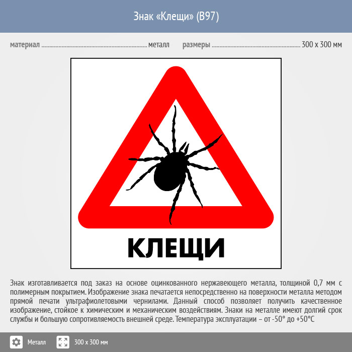 Знак «Клещи», B97 (металл, 200х200 мм) в Сургуте купить