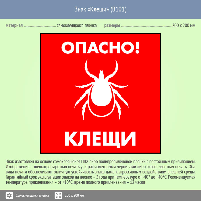 Знак «Опасно! Клещи», B101 (пленка, 200х200 мм) в Сургуте купить