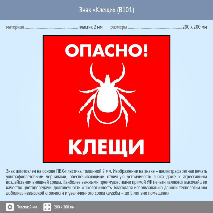Знак «Опасно! Клещи», B101 (пластик, 200х200 мм) в Сургуте купить