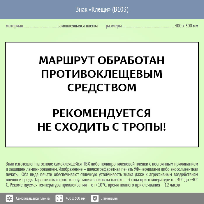 Знак «Клещи», B103 (пленка c ламинированием, 300х200 мм) в Сургуте купить