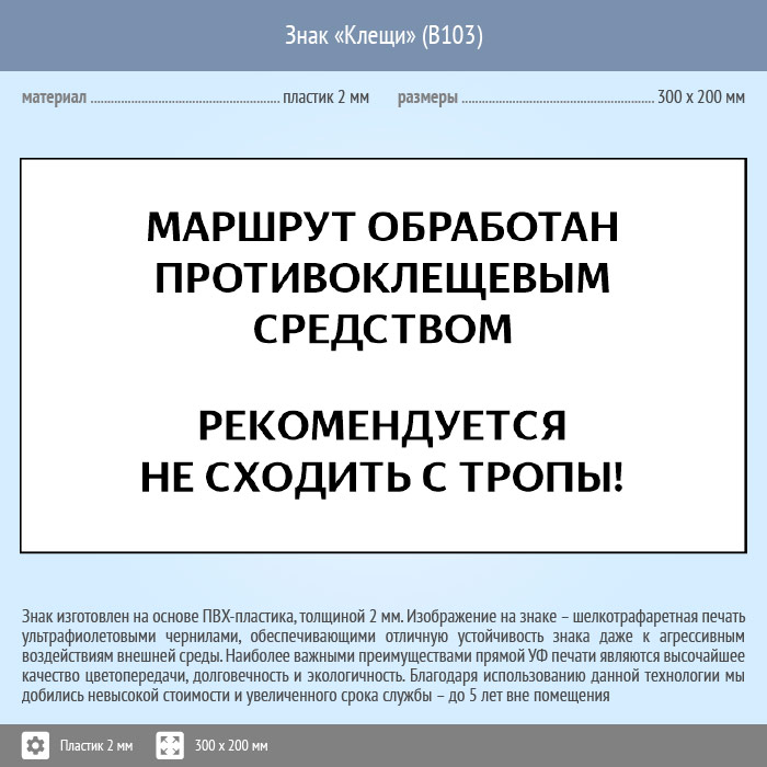 Знак «Клещи», B103 (пластик, 400х300 мм) в Сургуте купить